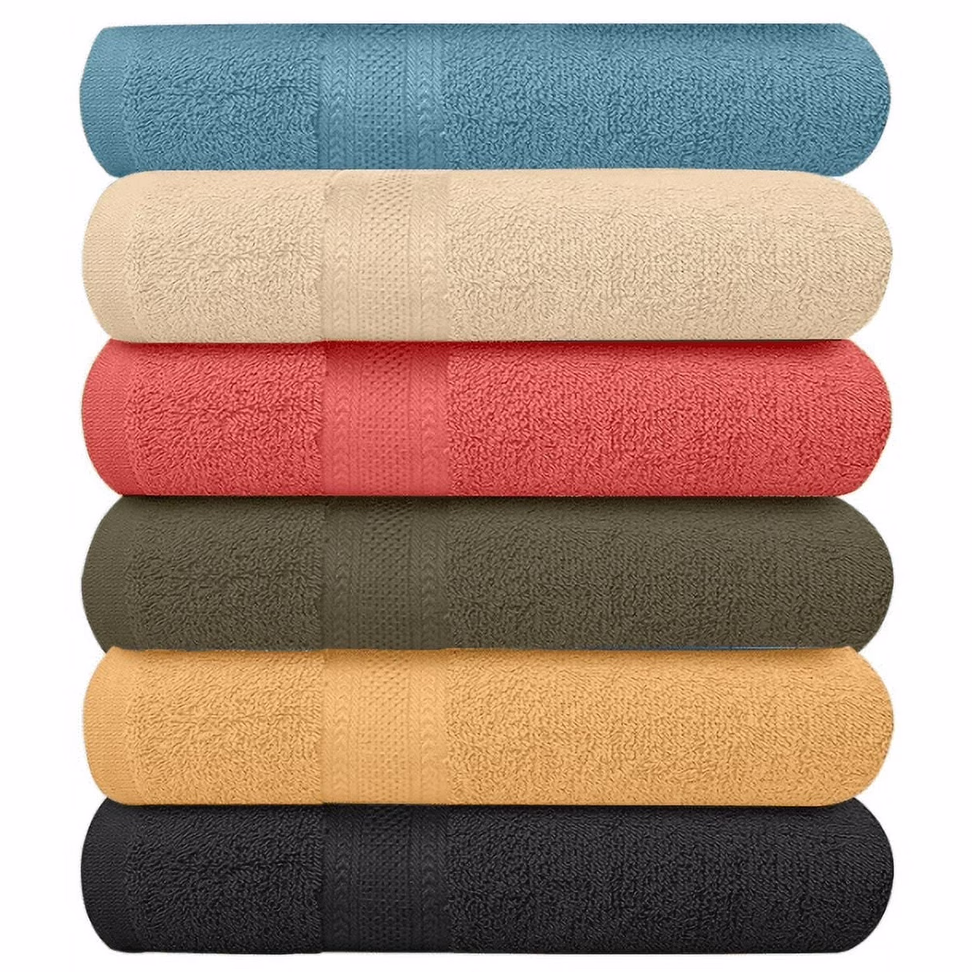 Pack of 6 Bath Towels 27 x 54 Inches, 100% Cotton, Larger & Lighter Weight