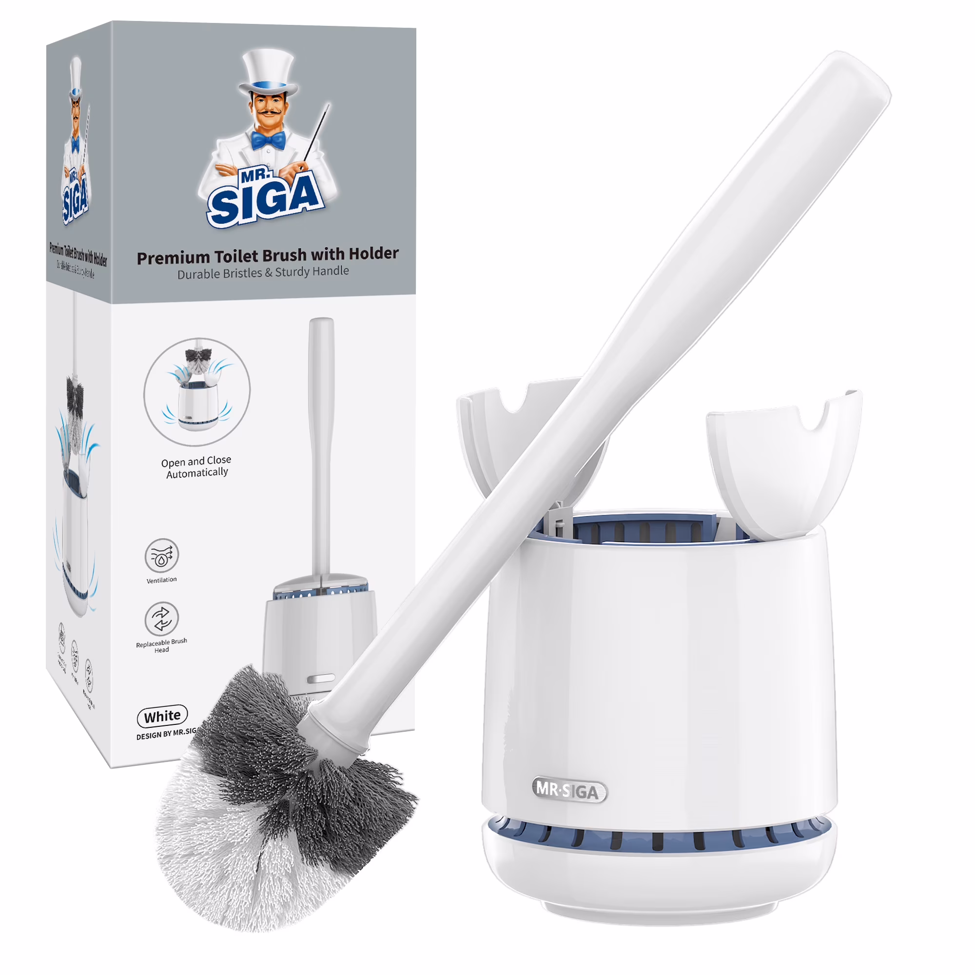 MR.SIGA Premium Toilet Bowl Brush and Holder for Bathroom Cleaning